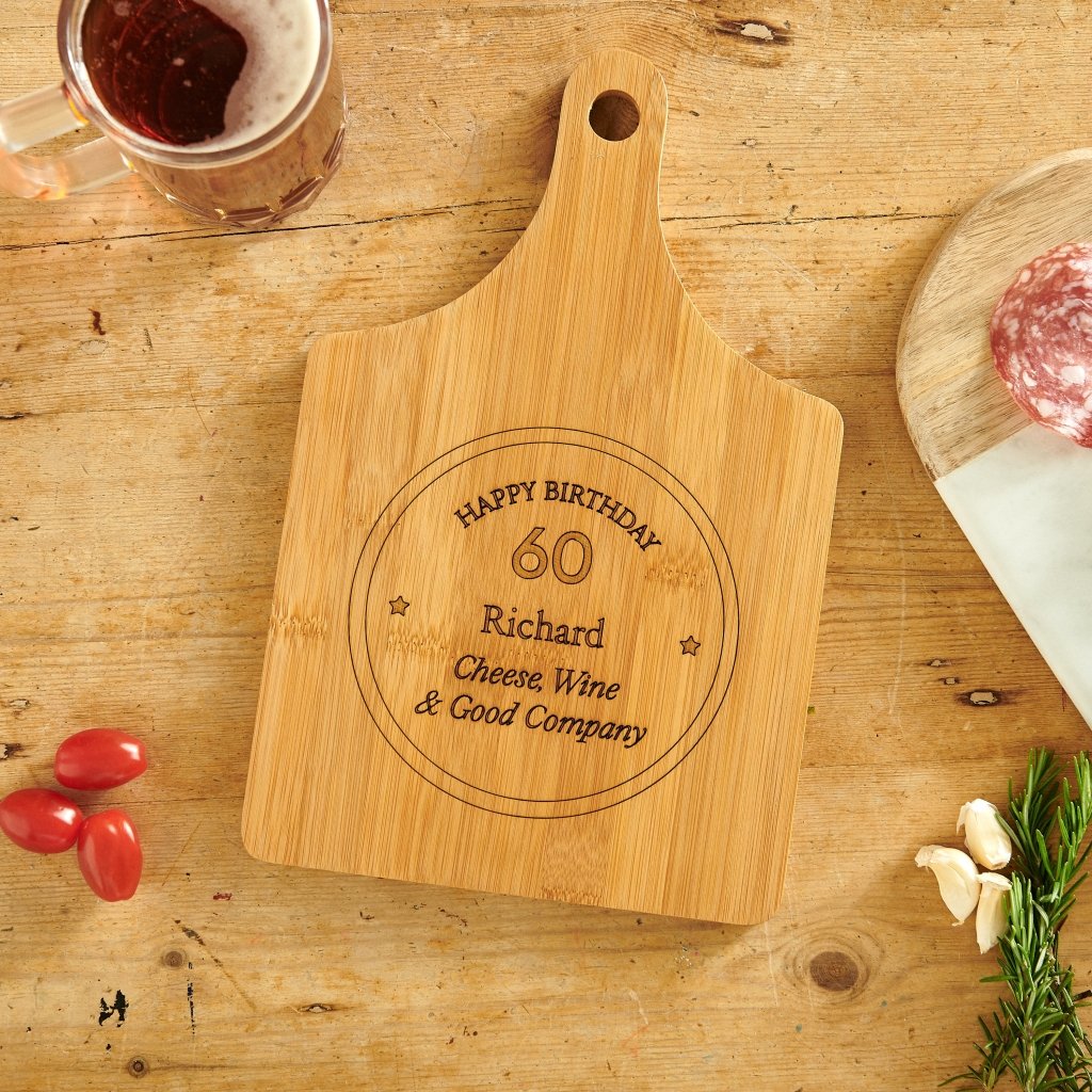 This personalised bamboo chopping board makes a thoughtful birthday gift for friends, family and grandparents. Engraved with our unique design, it’s a beautiful addition to the kitchen. Choose from a platter or circle board, and personalise with their name, age, and a short message.