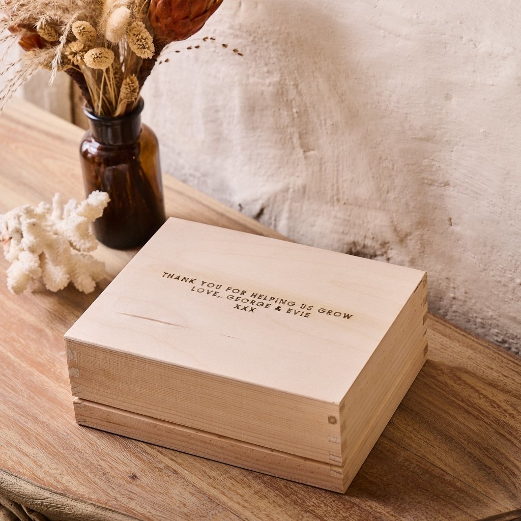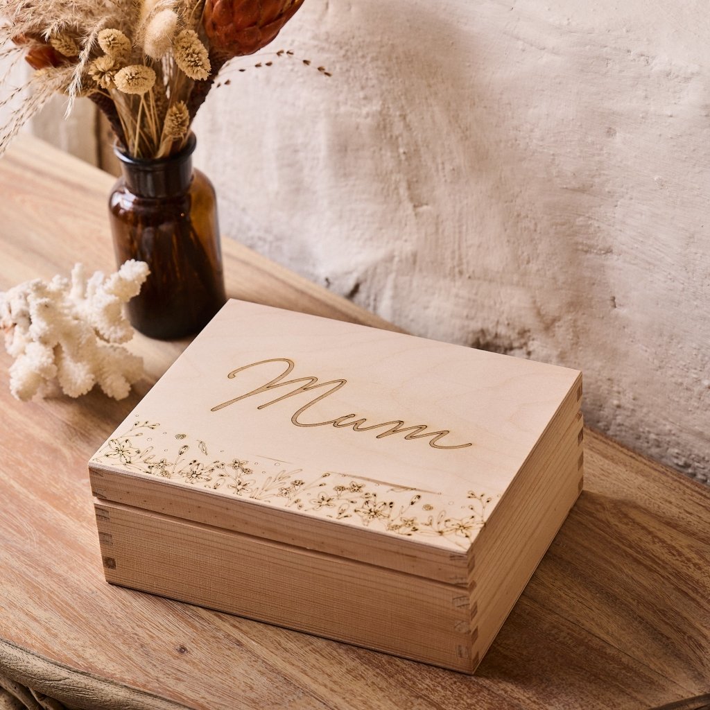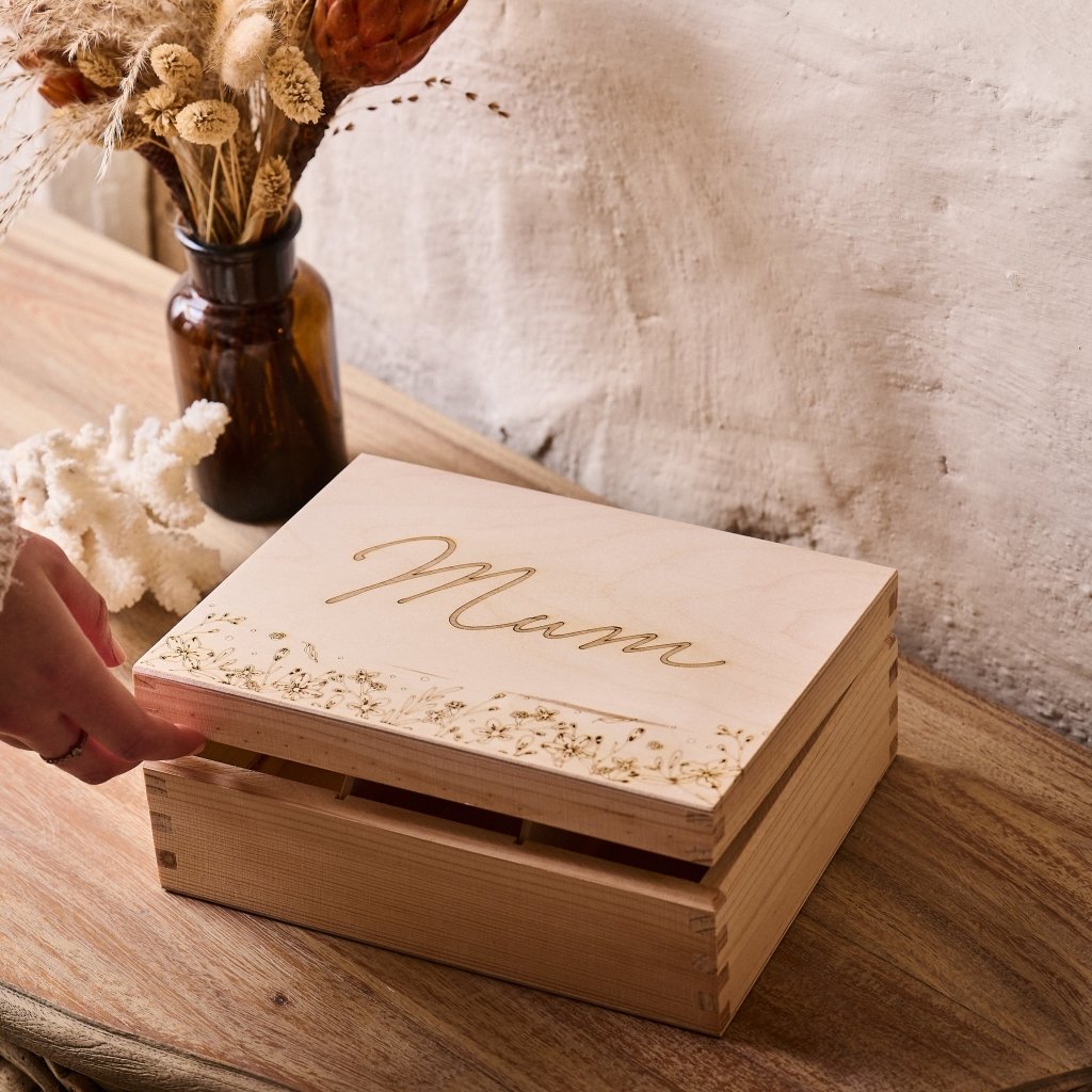 Our beautifully engraved wooden jewellery boxes are a lovely gift to treat Mum or Grandma on Mother's Day or at Christmas to show her how much she means to you. With compartments to safely store all her trinkets, its a useful yet thoughtful present that she will love.