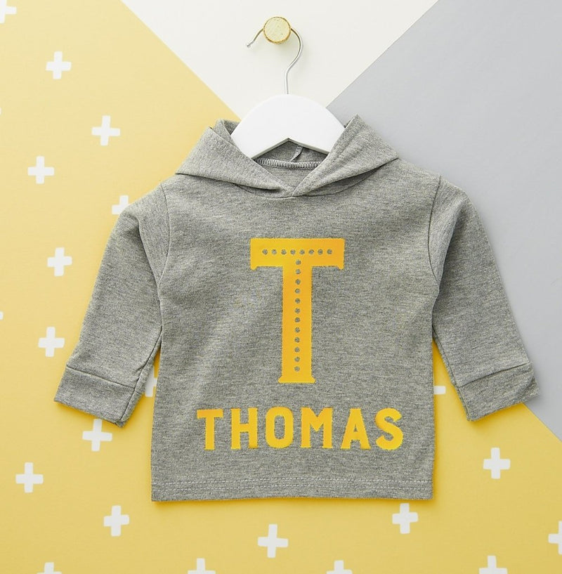 An adorable hoodie printed with a name and initial message, makes a gorgeous present for a new born baby. Our cute design makes a gorgeous present for a new born baby, a baby shower gift or Christmas gift from Grandparents, Godparents, Auntie & Uncle or friends. A special gift that celebrates baby's safe arrival!