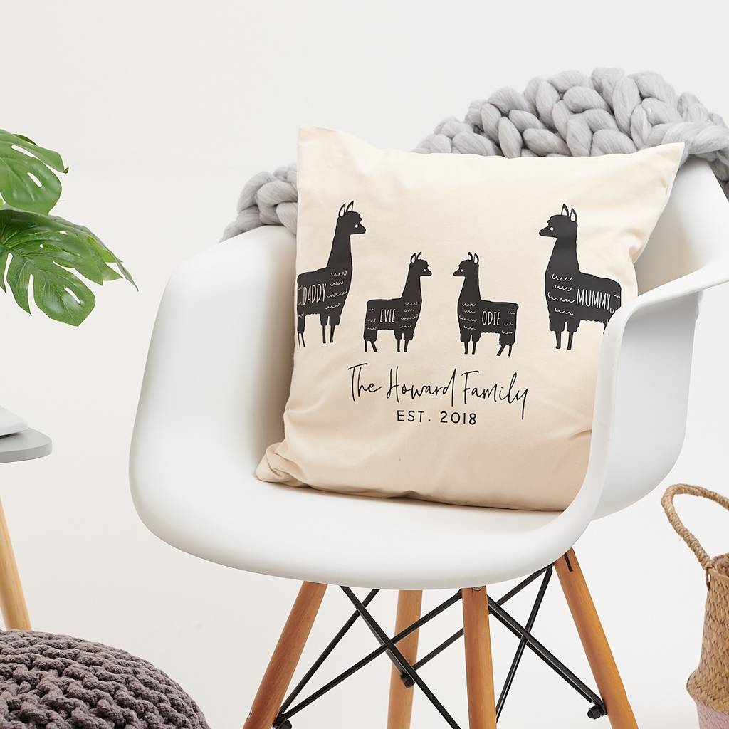 A unique and quirky cushion with an adorable alpaca design and personalised with each family members name. It's a fun gift for the whole family to enjoy or to accessorise the nursery, playroom or bedroom of an animal lover.