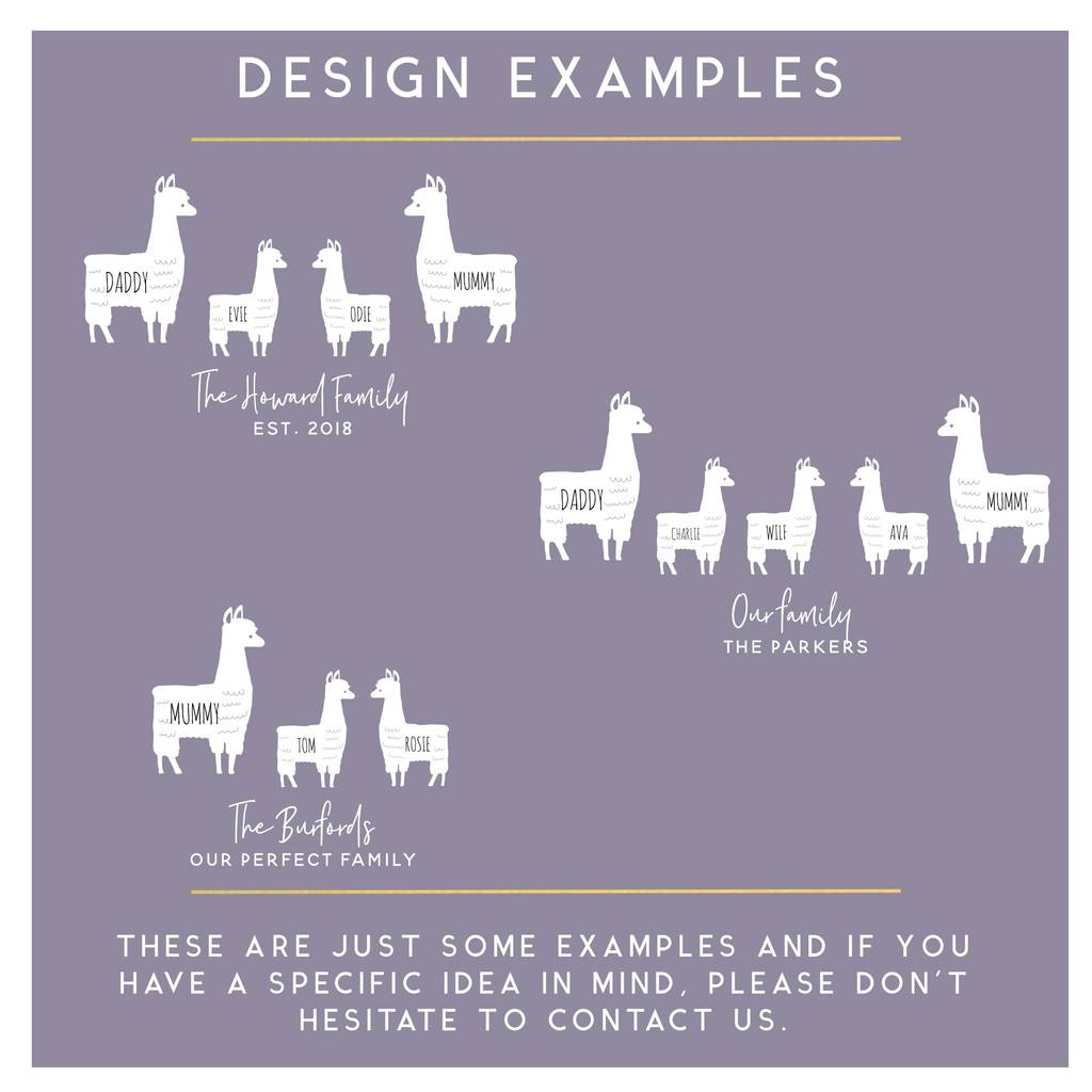 - Additional alpacas are added facing towards the left as seen in the design example, for more information, please drop us a line.