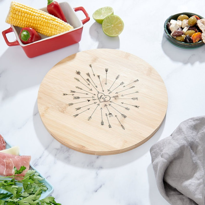 This wonderful chopping board makes a fantastic gift for a newly married couple, and also makes a great anniversary or Valentines Day present for your other half. A beautiful addition to the kitchen, which is is sure to be used and cherished. Made by our small team in Sussex, choose from a platter or circle bamboo board for a gorgeous gift.