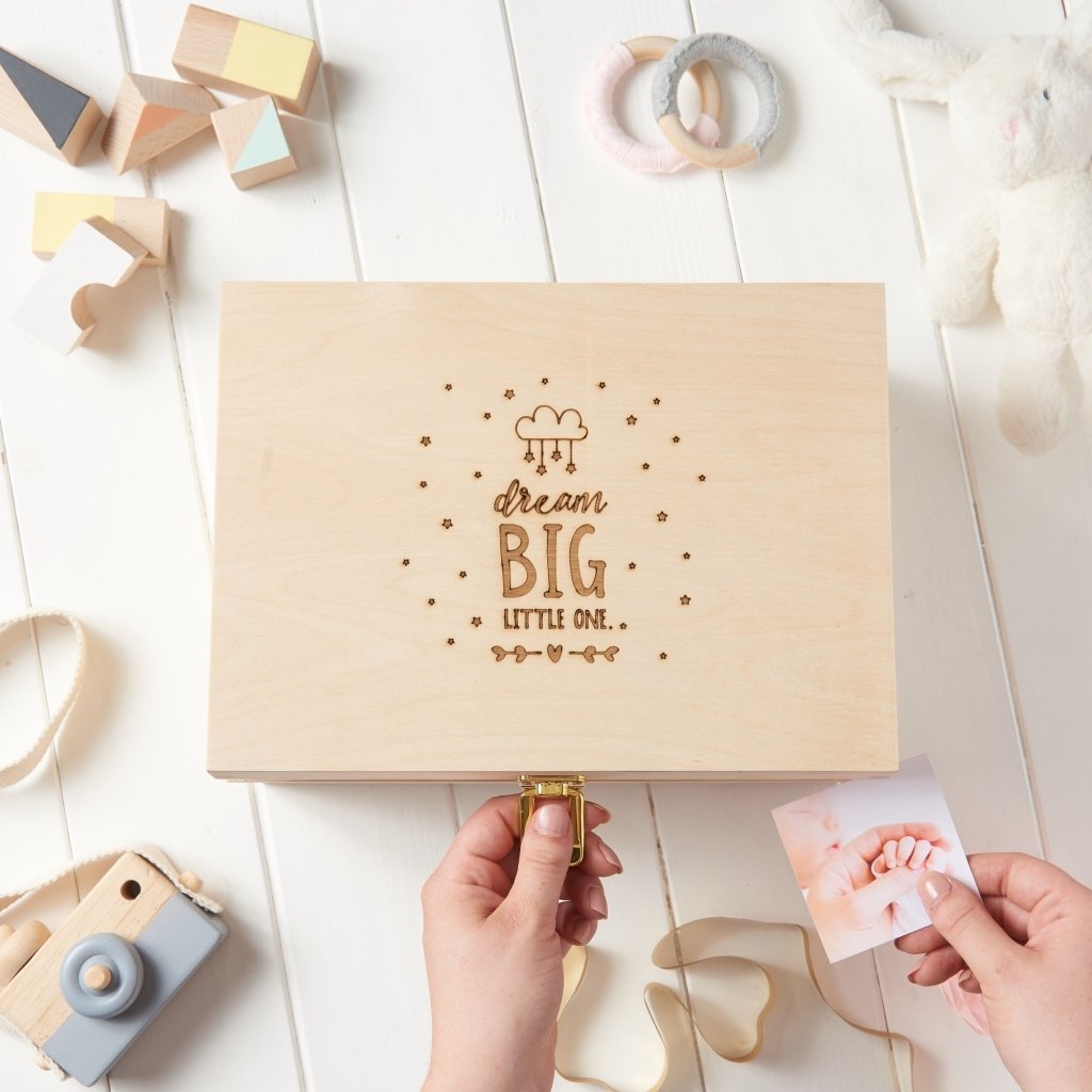 Money will come and go; but memories stay, and with our gorgeous Dream Big Little one keepsake box, you can give the gift of safely storing those memories. A first birthday or first Christmas gift that will be cherished, each box is the perfect size for photographs, cards and in years to come, it can be used to store first drawings, loved threadbare toys or a precious first curl of hair.