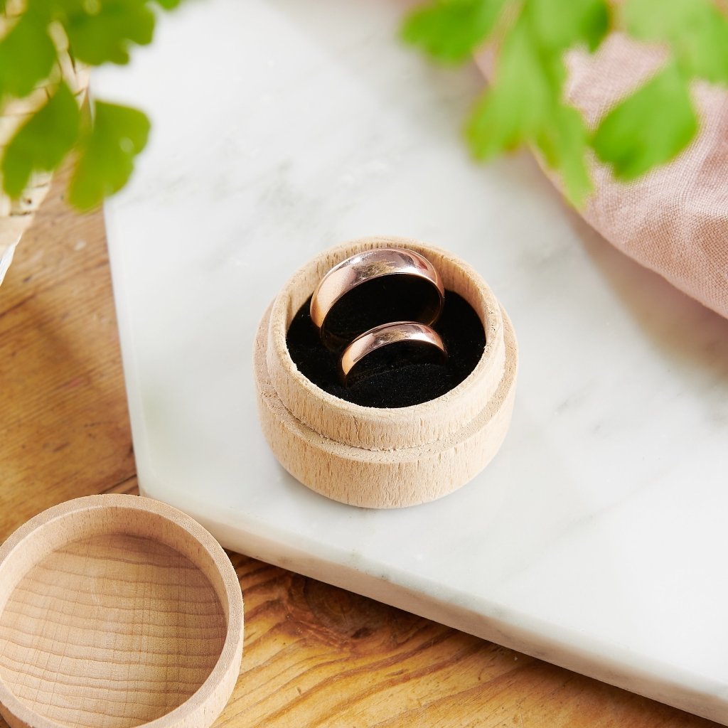 - Each ring box is made from birch and includes a velvet ring cushion.