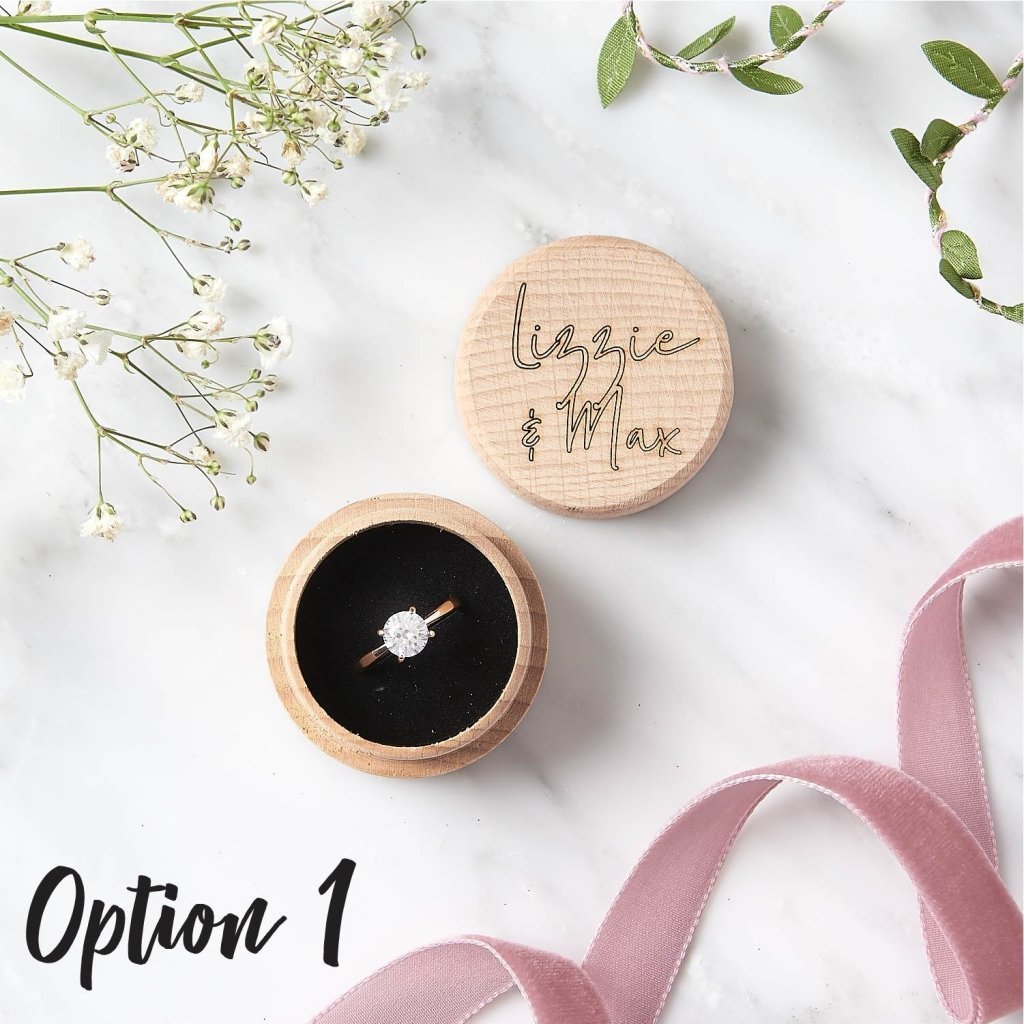 - When including your details, please let us know whether you would like the box to hold two rings and we can include a second slot for the ring.