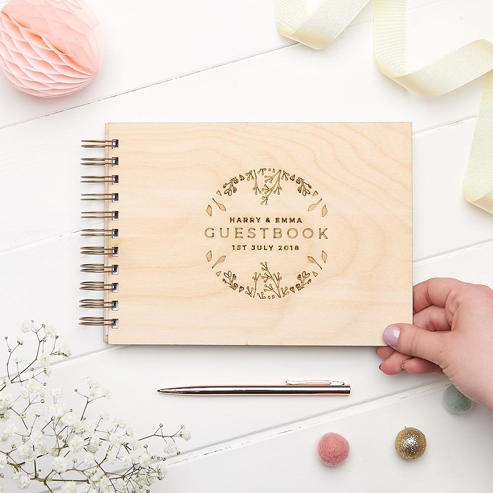 A luxury laser engraved wooden wedding guest book featuring our gorgeous floral design. This beautiful book is personalised with your surname and wedding date. All our guest books can be made from either birch or oak. This is a guest book that can be used on the big day and afterwards can be used as a memory book with wedding snaps, dried flowers from the wedding bouquet and wedding stationery.