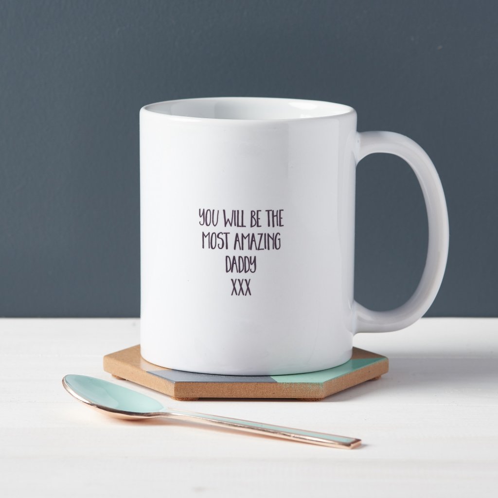 A fun token Christmas gift or Father's Day present for a soon-to-be Dad, this personalised mug is a unique way to announce your big news, celebrate becoming parents, and commemorate the time with a thoughtful keepsake. Personalise with the future-Dad's name and add an optional small message to the back - then pop the kettle on.