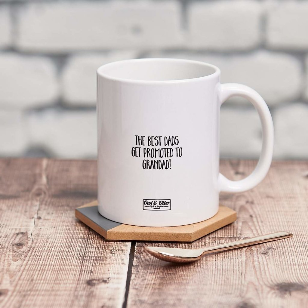 A token Father's Day or Christmas present for a soon-to-be Grandad, this personalised mug is a unique way to announce your big news and celebrate Dad upgrading to Grandad. Commemorate this special time with a thoughtful keepsake gift he'll get to use every day. Personalise with the soon-to-be grandparent's name and add an optional small message to the back - then pop the kettle on for him!