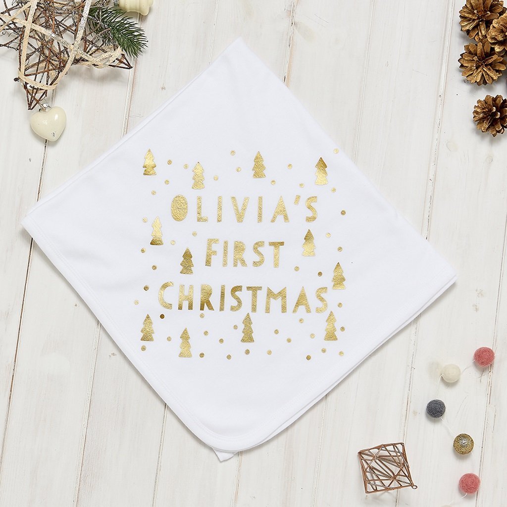 A super-soft and super cute Christmas blanket personalised with a name and perfect for a baby's first Christmas! Made from 100% cotton, making it soft on baby's skin and featuring our beautiful scandi design. The blanket can be printed in a number of colours, making this a truly unique present that will be cherished for years to come.