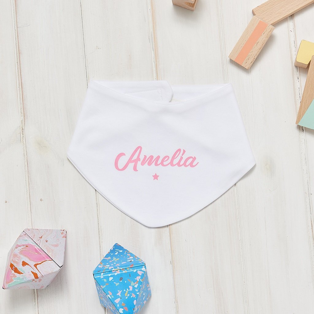 An adorable personalised bib make exclusively for the beautiful new arrival! Made from 100% cotton, making them soft on baby's skin and the bib can be printed in a number of colours, making this a truly unique baby shower or new born baby present.