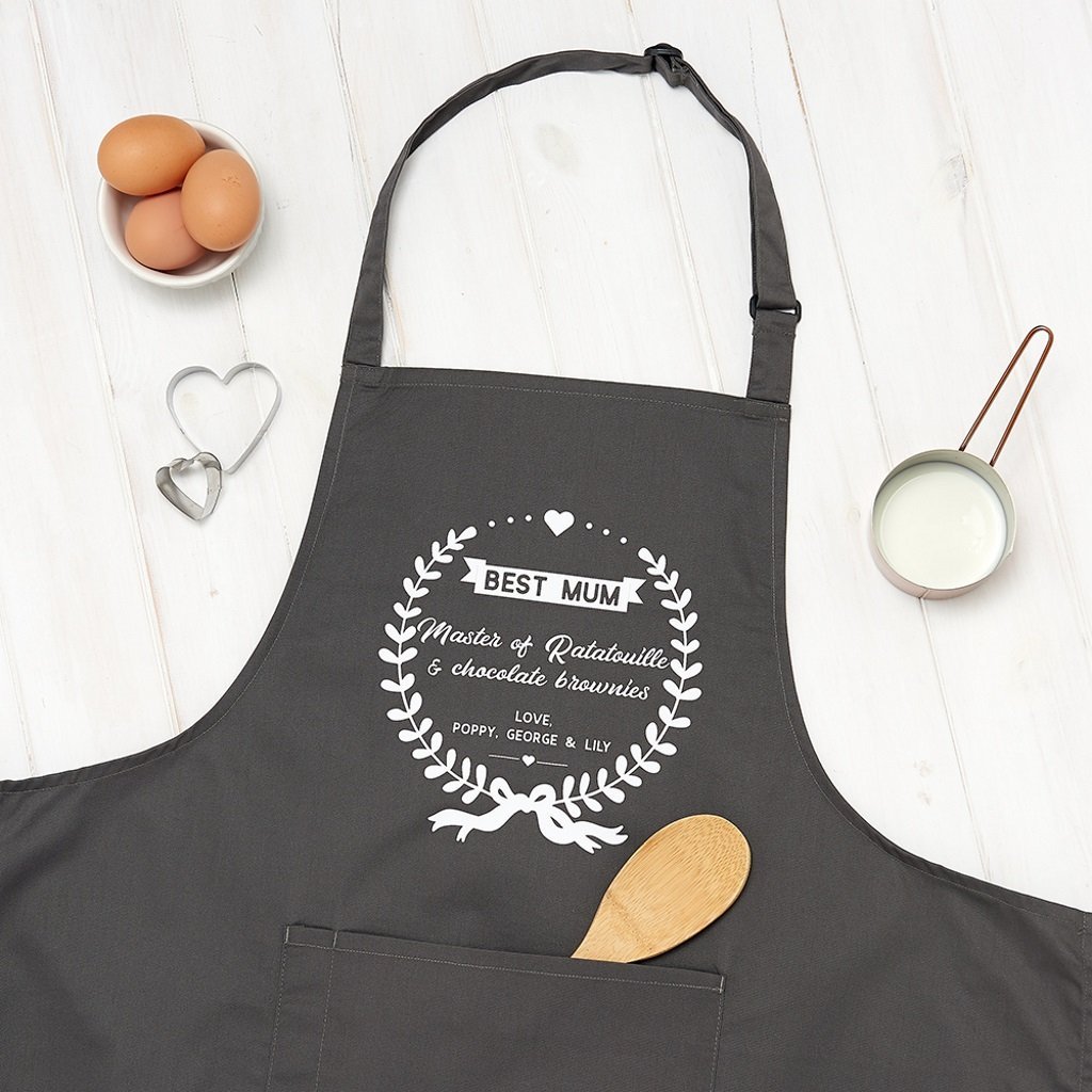 There are some recipes that Mum has perfected and this is celebrated in our personalised aprons, perfect for Christmas, Mother's day or a birthday. Featuring our gorgeous personalised wreath design make a lovely long lasting present that will be cherished by the super chef in your household!