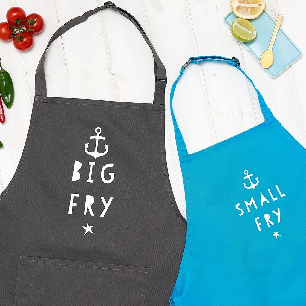 - Our designs and colours are suitable for Mum or Dad, so we can personalise each apron to suit, just let us know if you would like to use different personalisation e.g. Small Fry, Captain, etc.