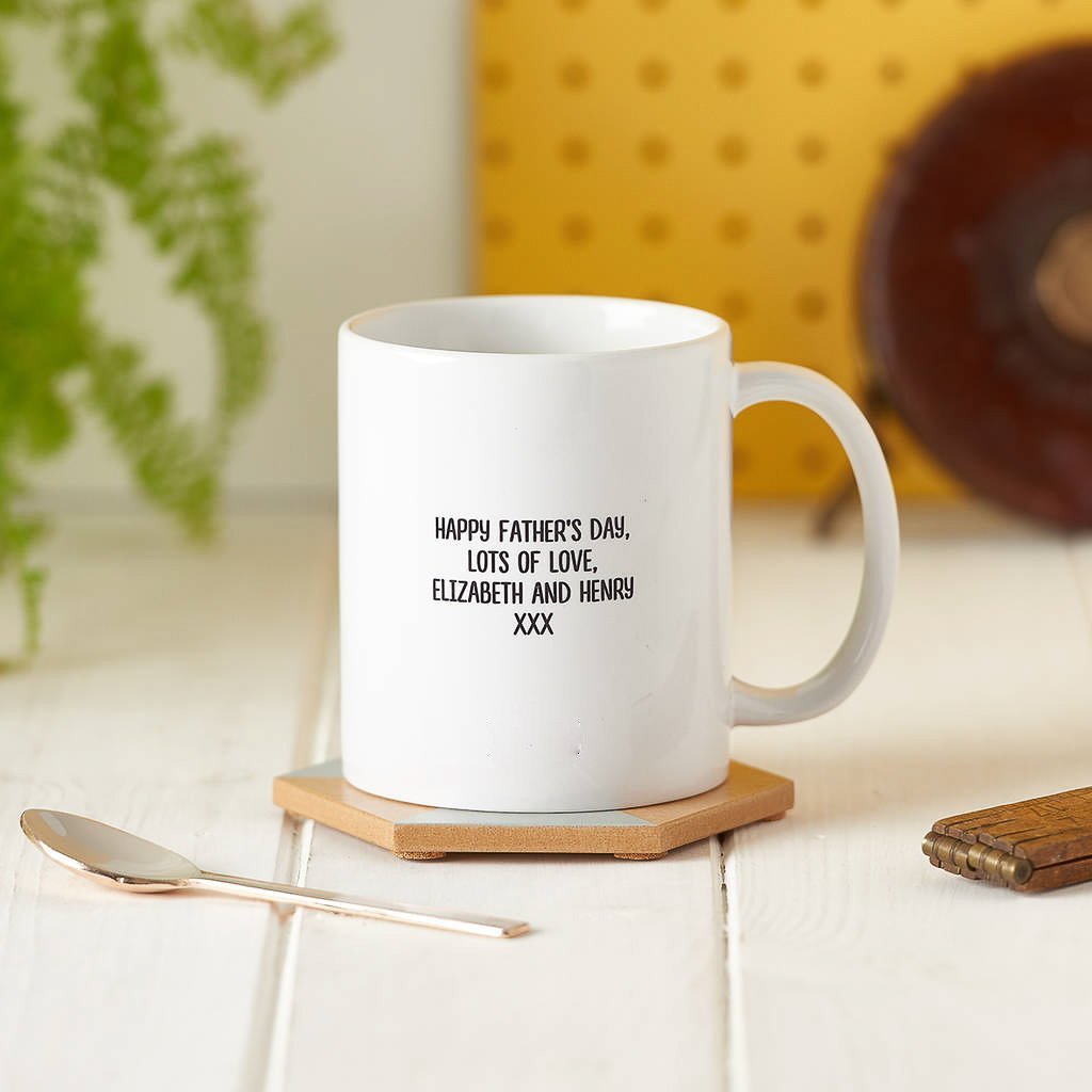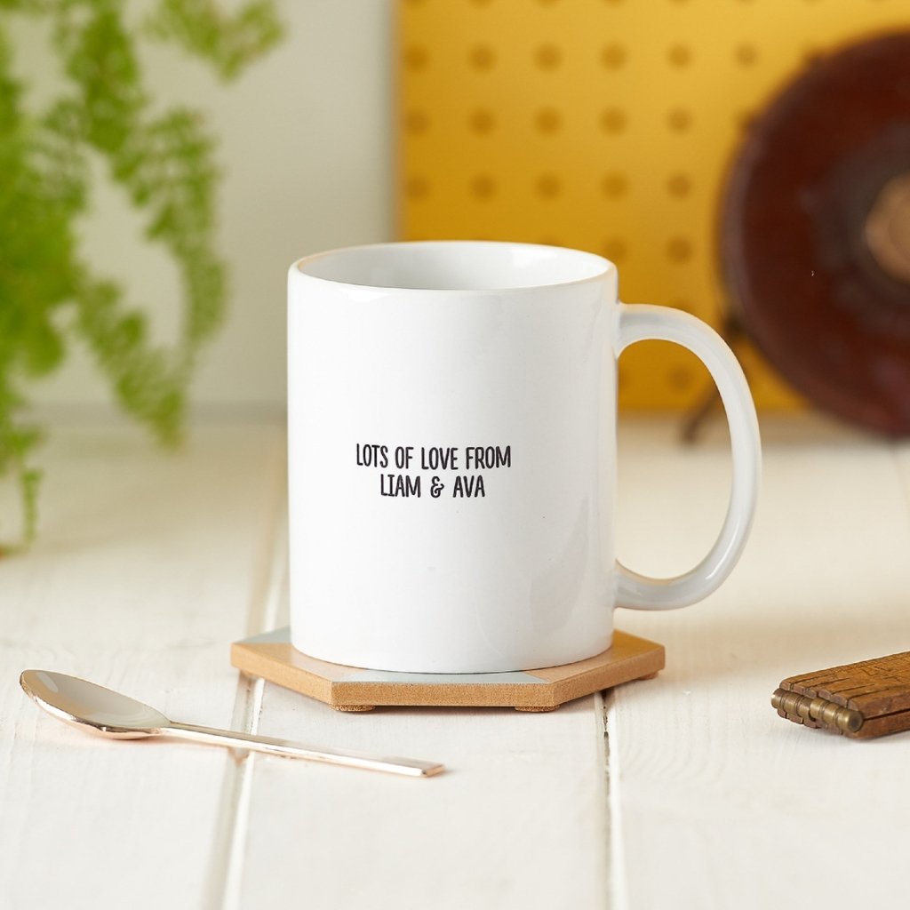 We believe that every Dad deserves a good cup of tea when it's his turn to look after the little ones, so we created this mug. A special little present from the kids for the most brilliant Dad (so, every Dad) on Father's Day, Christmas, or just to say thank you. The lovely and simple design can be personalised to feature whichever name your parent goes by and a heartfelt message - or dad joke - on the back.