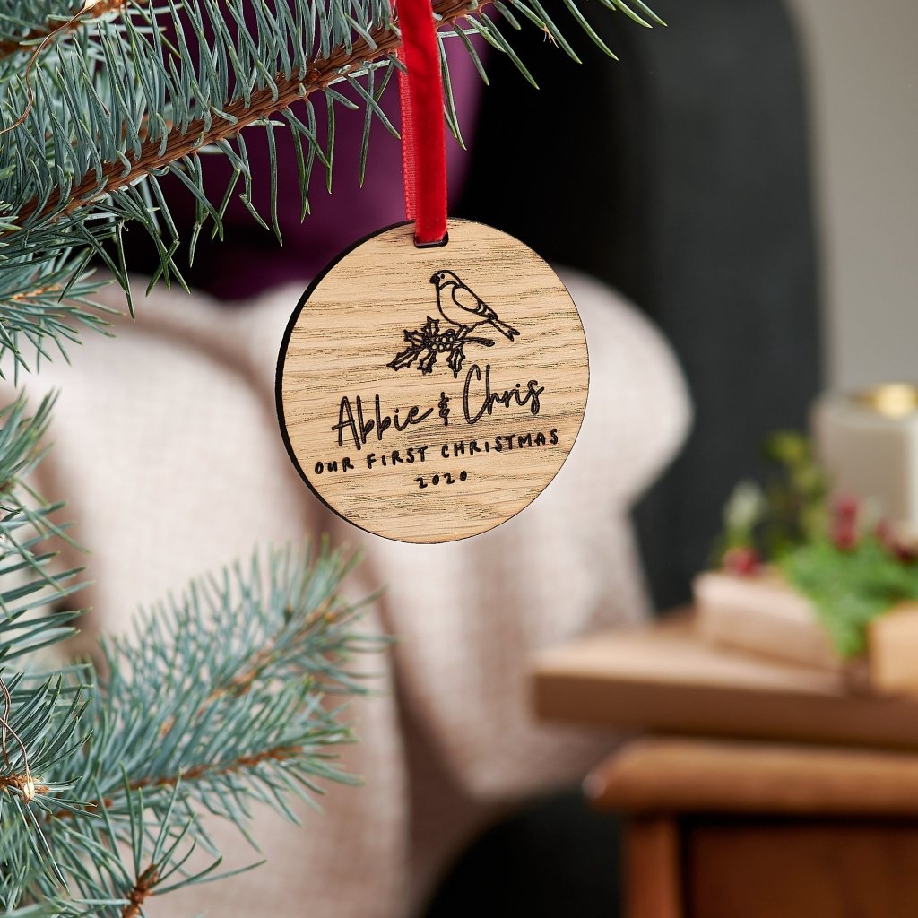 Celebrate your first Christmas as a couple with our gorgeous personalised wooden Christmas bauble. Whether you are buying for yourself, son/daughter or friend, this wonderful decoration is the perfect gift to celebrate a special occasion that will be cherished for years to come. These decorations work perfectly as a Christmas Tree decoration, gift tag, keepsake or table setting - they are truly unique and can be enjoyed each year.