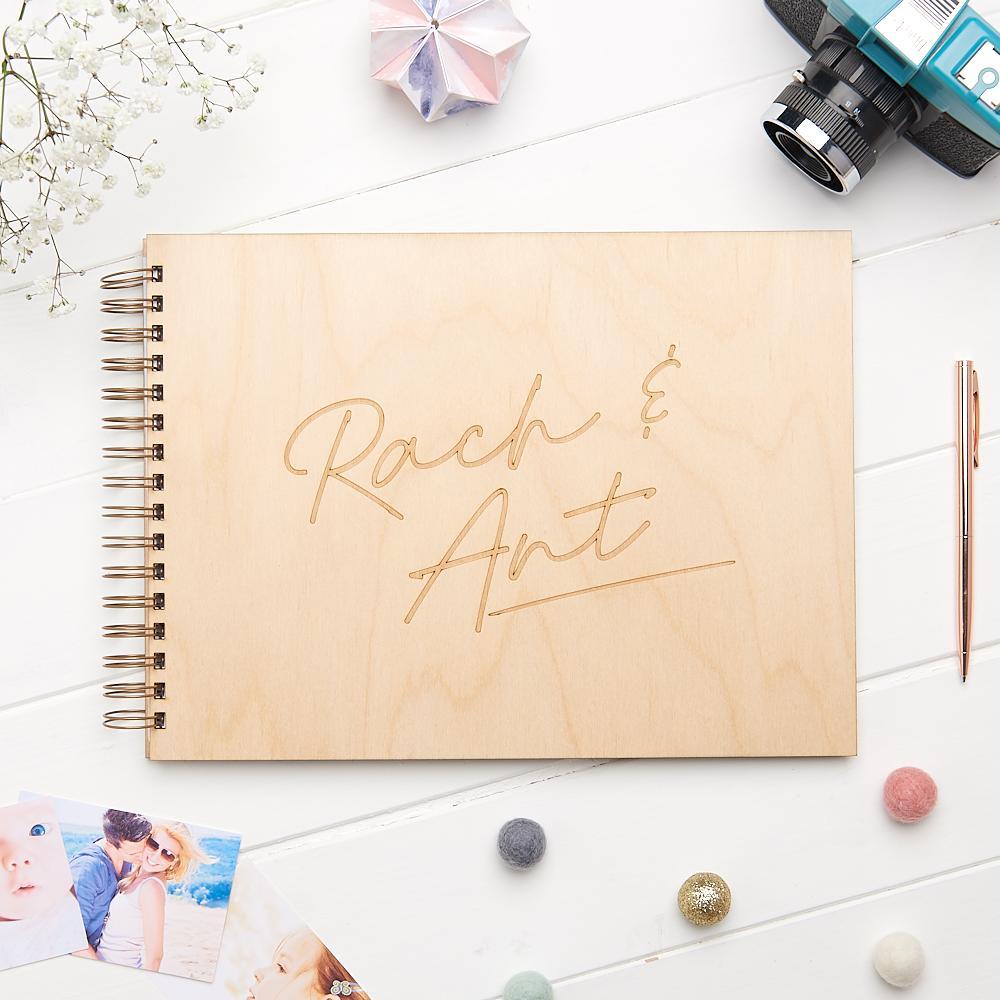 A luxury memory book in birch or oak, laser engraved with the couples names, a date and message on our simple yet gorgeous typography design. Can be filled with memories of your time together as a Valentines Day gift, a wedding guest book or planner for your special day or a memory book to be filled with special photos.