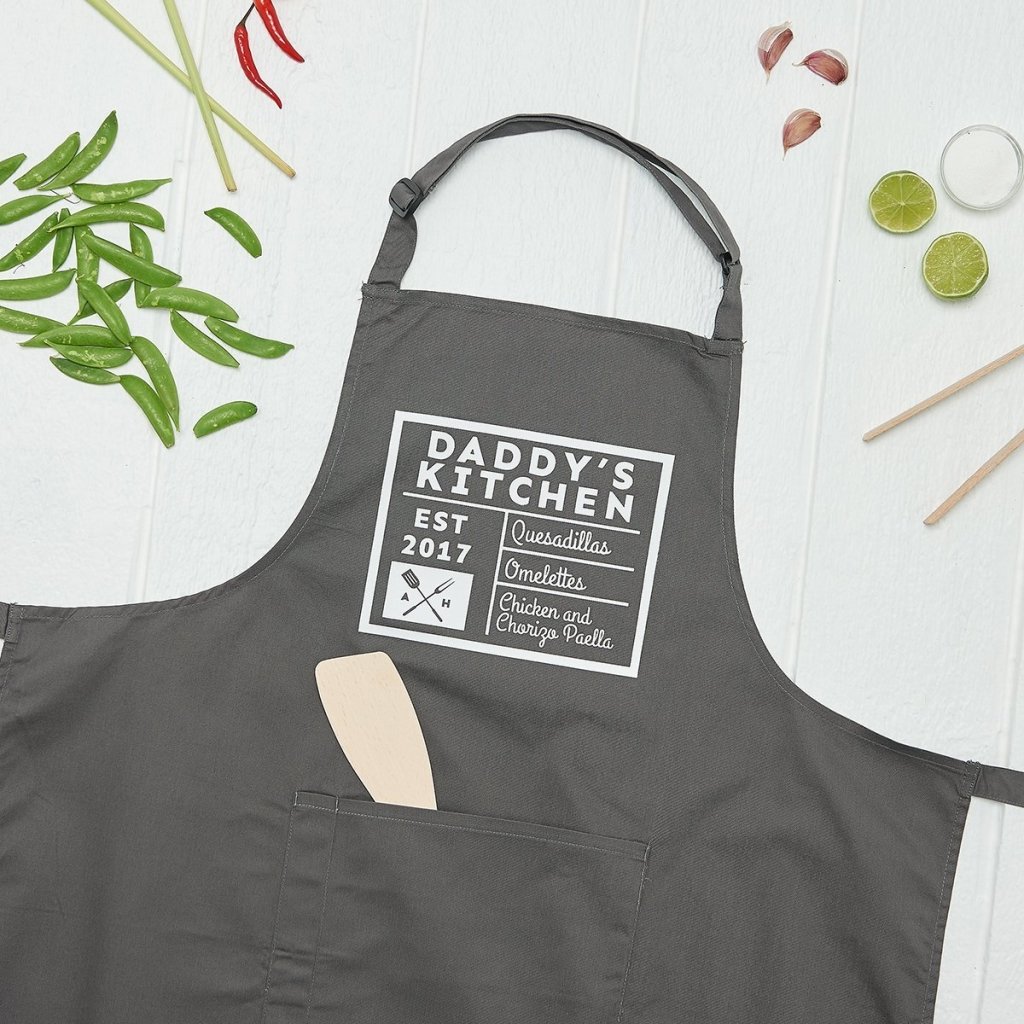 • For the Dad that takes pride in his cooking, a personalised apron is a useful and different Father's Day or Christmas gift that he'll get to use every day. Personalise the hardy apron with his name, a special date (such as the year he became a dad) and his top three delicious dishes - and then ask him very nicely if he'll cook them for you!