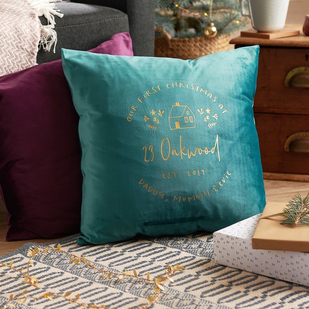 • Celebrate your first Christmas in your new home with our gorgeous personalised velvet Christmas cushion. Whether you are buying for your own home or as a gift for a loved one, this is a lovely cushion that adds a touch of style and luxury to the home.