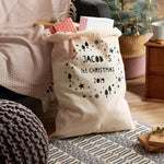 - Made from 100% natural cotton, our personalised Christmas sacks are printed in either metallic gold, metallic green or black. The sack features a hoop so it can be hung up ready for Christmas morning.