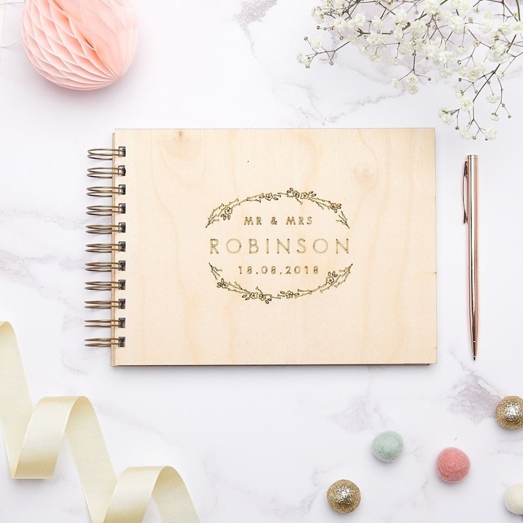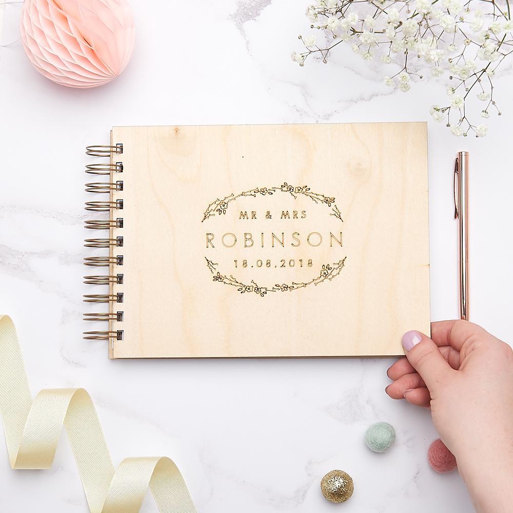 A luxury laser engraved wooden wedding guest book featuring our gorgeous floral design. This beautiful book is personalised with your surname and wedding date. All our guest books can be made from either birch or oak. This is a guest book that can be used on the big day and afterwards can be used as a memory book with wedding snaps, dried flowers from the wedding bouquet and wedding stationery.