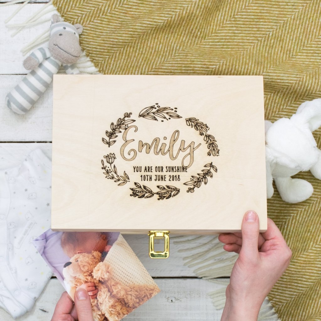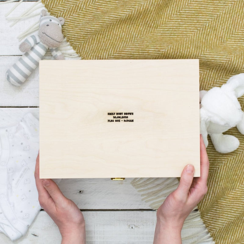 Our personalised baby Keepsake box is a beautiful gift for proud parents and is perfect for safely storing gorgeous mementos. The box is a perfect size for photographs, cards and in years to come, it can be used to store first drawings, loved threadbare toys, first curl of hair and every precious memory.