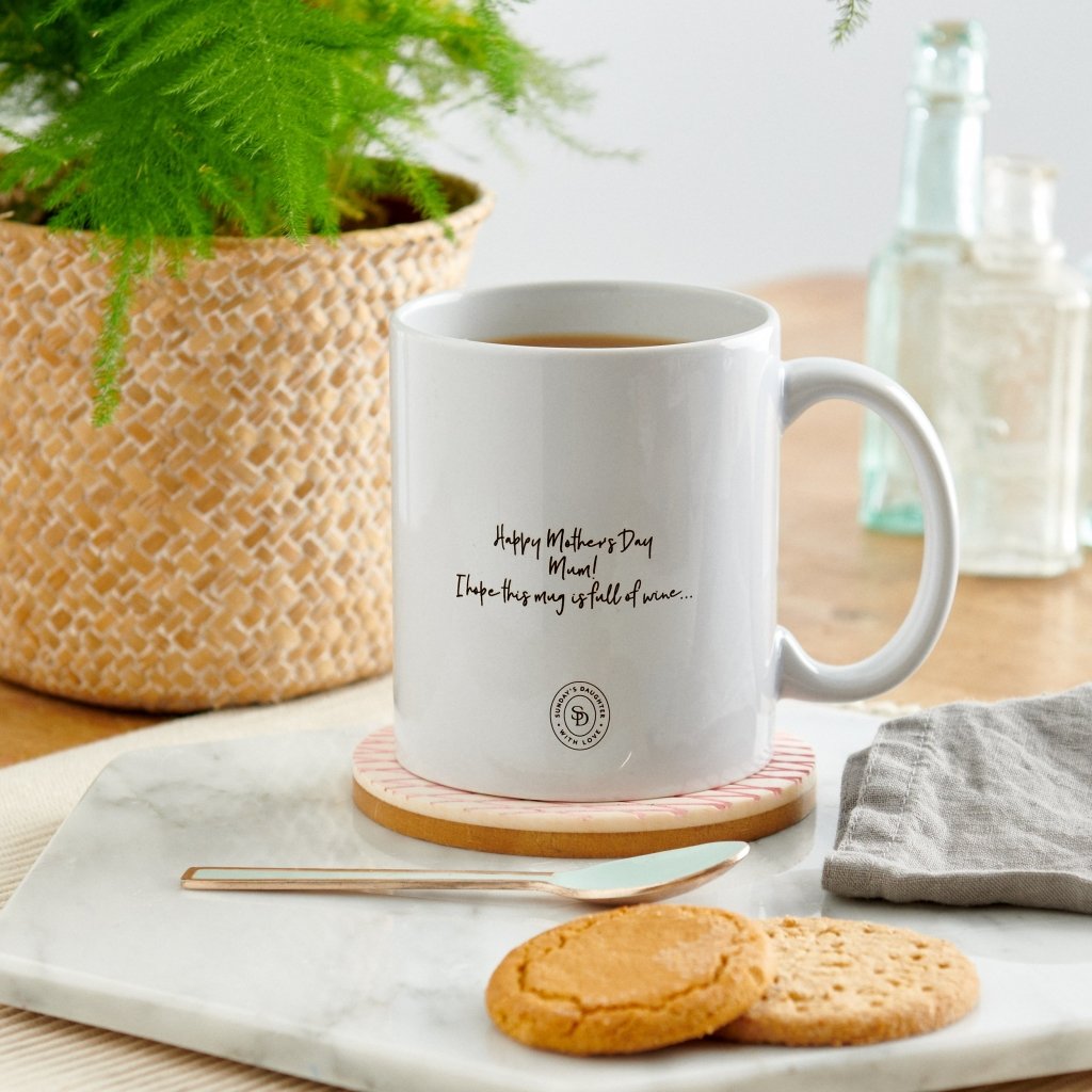 - White ceramic mug with a handle, all our mugs are dishwasher proof. We carefully swaddle them in bubble wrap and place them in boxes to ensure they arrive safely at their destination.