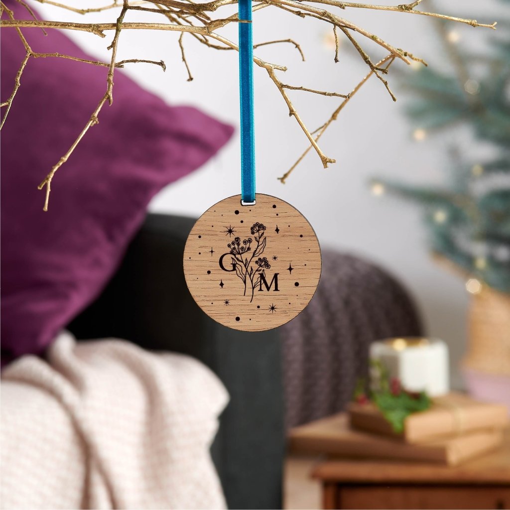Celebrate your first Christmas as a couple with our gorgeous personalised wooden Christmas bauble. Each bauble is engraved with our unique Christmas design and is made from Oak veneer & velvet so will make a lovely decoration in your home.