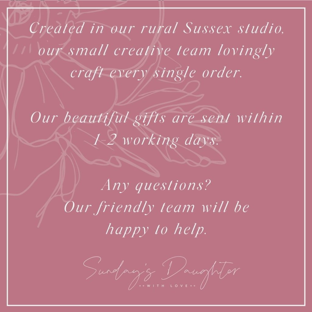 • All our cards are printed in either landscape or portrait and are made in our Sussex based studio by our small team.