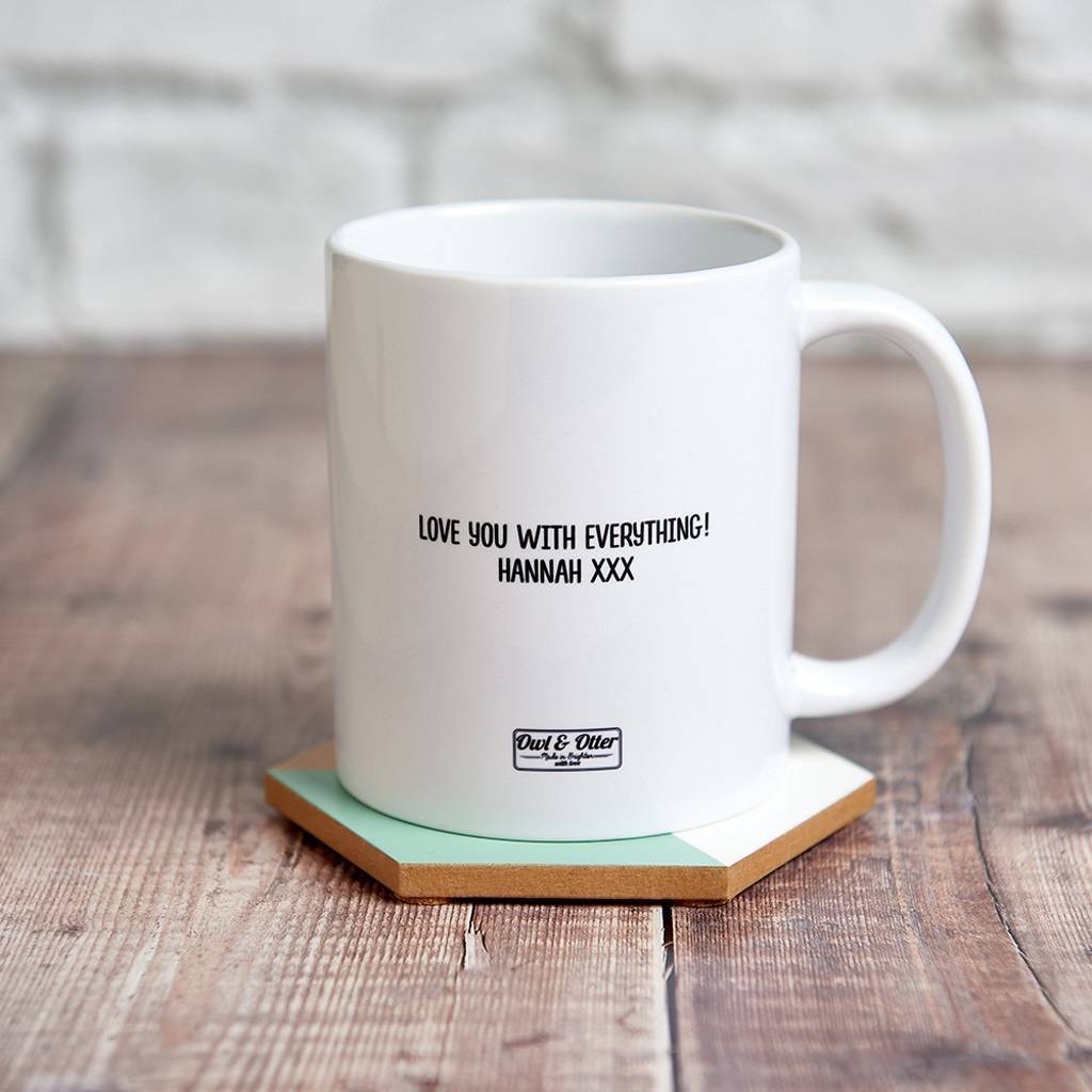 - Each mug can be personalised with a message on the back for an extra touch or you can leave it blank.