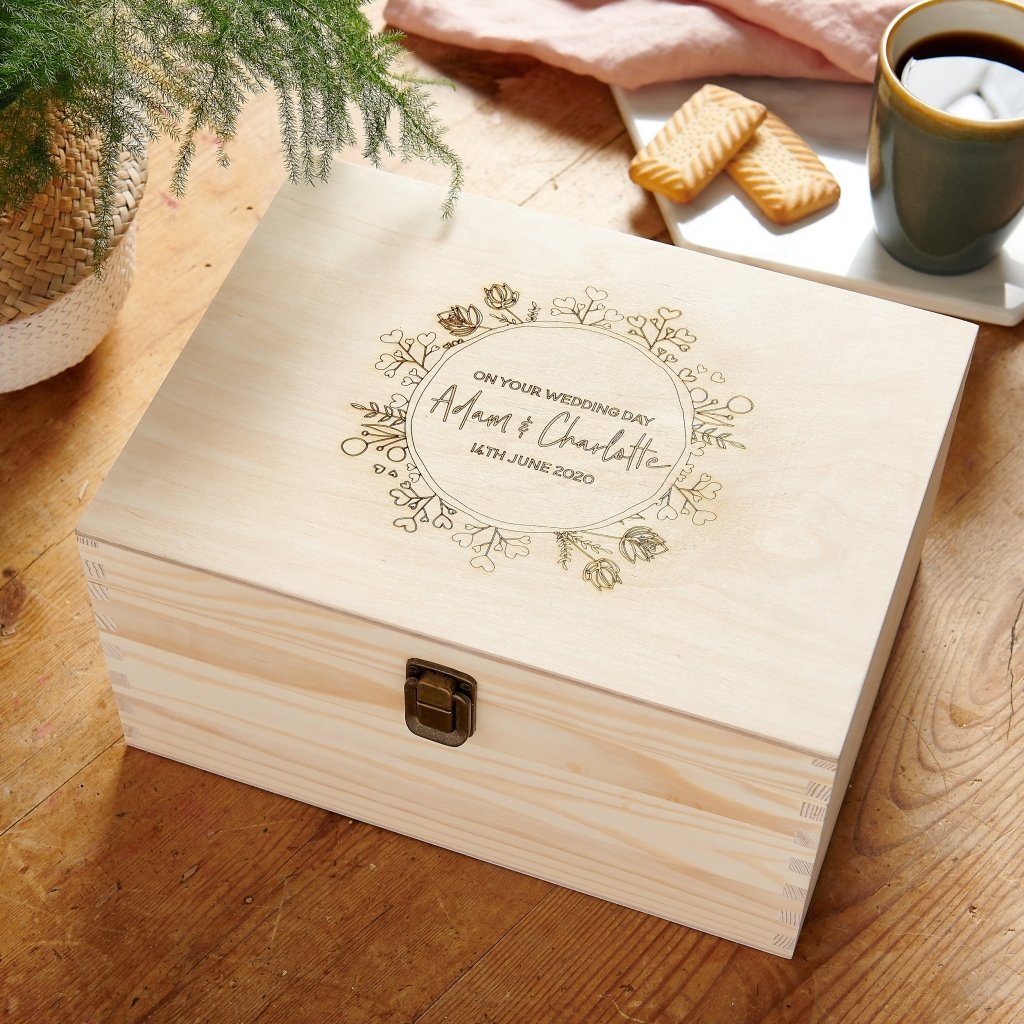 Our Personalised Wooden Keepsake Box is the ideal wedding, anniversary or engagement gift.