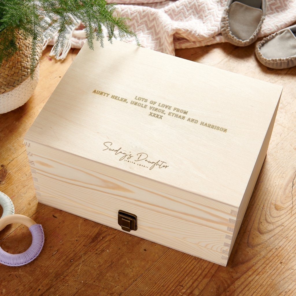 - Designed and personalised by our small team in the Sussex countryside, each keepsake box is made from untreated pine and laser engraved with love.