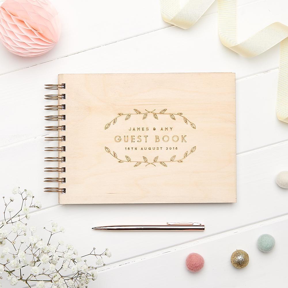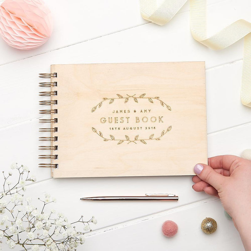 A luxury laser engraved wooden wedding guest book featuring our gorgeous laurel design. This beautiful book is personalised with your surname and wedding date. All our guest books can be made from either birch or oak. This is a guest book that can be used on the big day and afterwards can be used as a memory book with wedding snaps, dried flowers from the wedding bouquet and wedding stationery.