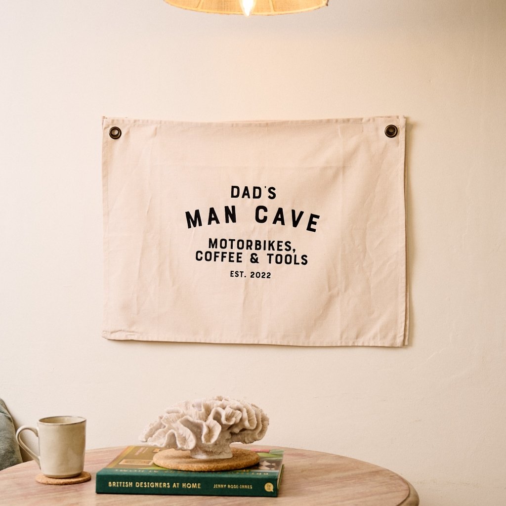 Our linen banner is a great Christmas gift for Sons, Dads or Grandads to hang up outside their office, shed or man cave. Every man deserves his own space to spend time on his hobbies (and to hide from the kids) whether that's motorbikes, building things or watching sports and our banners can be personalised for whatever he likes to do most.