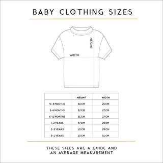- T-Shirt: 0-3 Months, 3-6 Months & 6-12 Months
