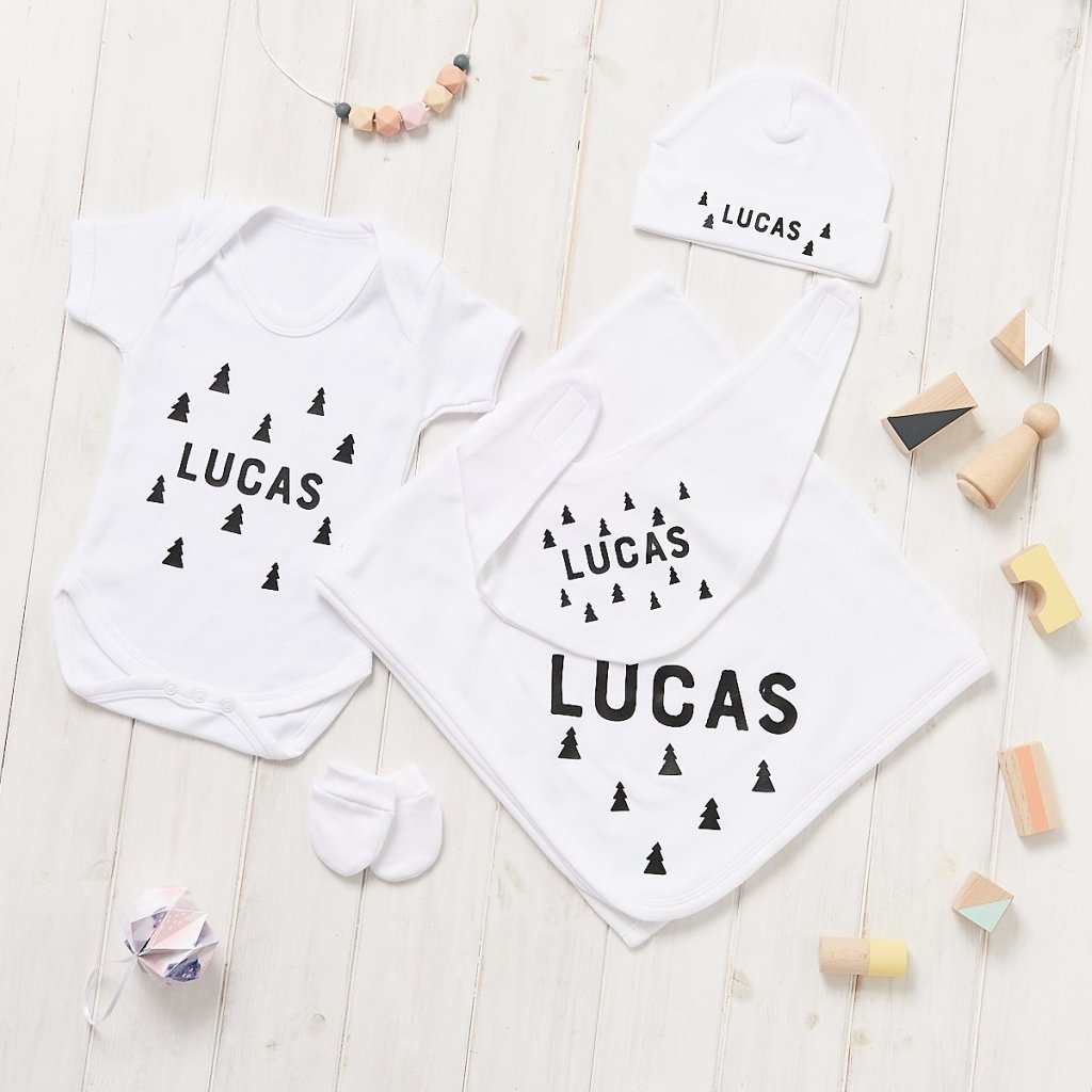 - Made with 100% super-soft cotton here in our Sussex based studio, the set includes a babygrow, blanket, hat, bib & mitts.