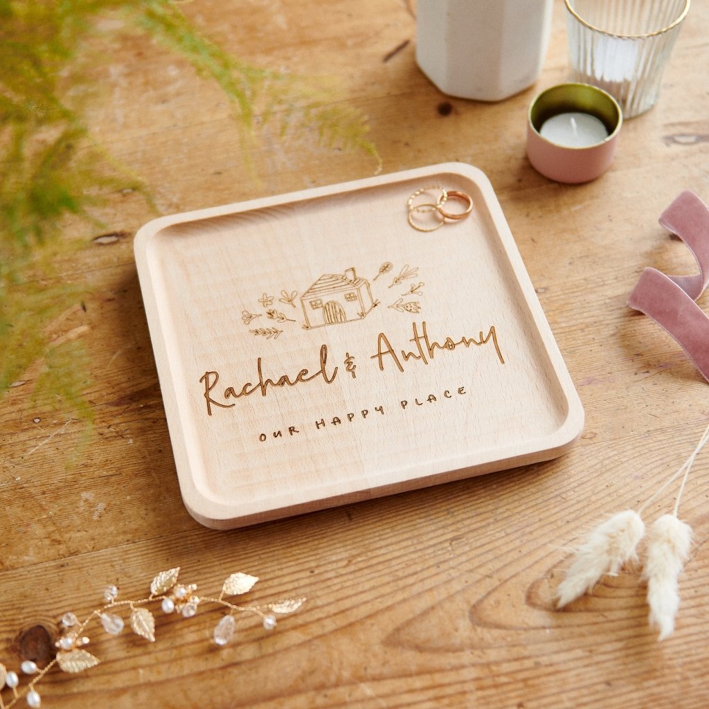 Buying a new home can be difficult and challenging but when you get the keys and you're in, the stress just feels worth it! Give a unique yet practical memento gift that ensures that they never lose their keys with our personalised wooden key dish. A great gift to put the side table and the perfect size that will be used daily.