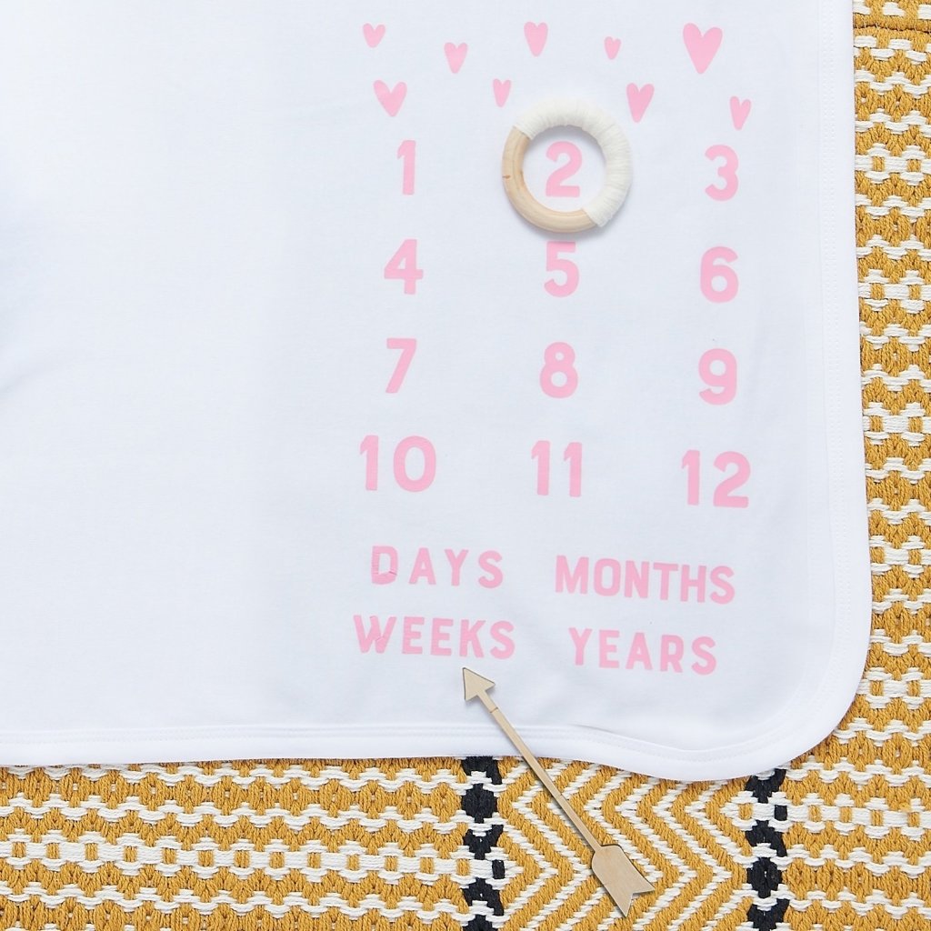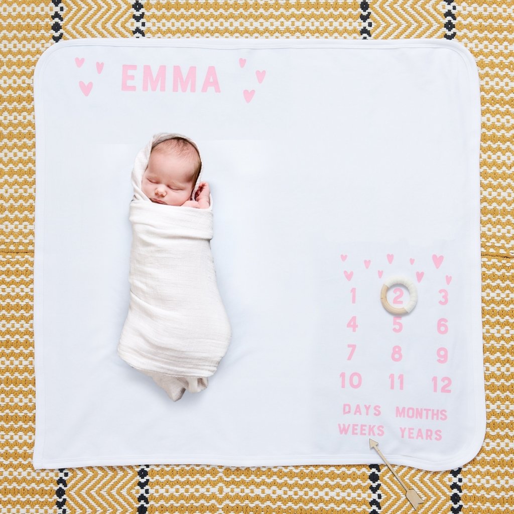 Our beautiful scandi hearts baby milestone blanket can be personalised with your choice of name & colour to capture those special early years. A great present for new parents or for your new baby, our milestone blanket helps capture special moments when time seems to fly by.