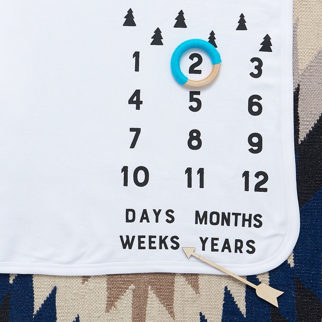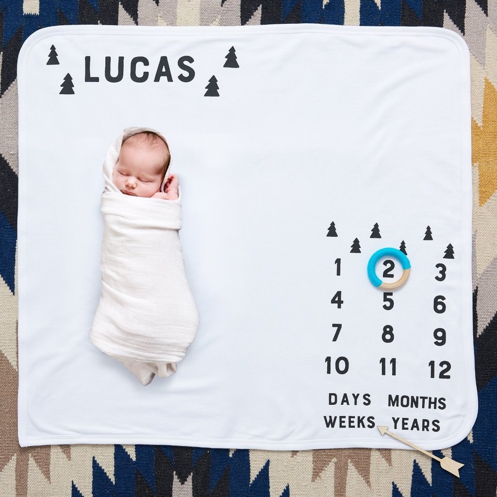 Our beautiful scandi trees baby milestone blanket can be personalised with your choice of name & colour to capture those special early years. A great present for new parents or for your new baby, our milestone blanket helps capture special moments when time seems to fly by.
