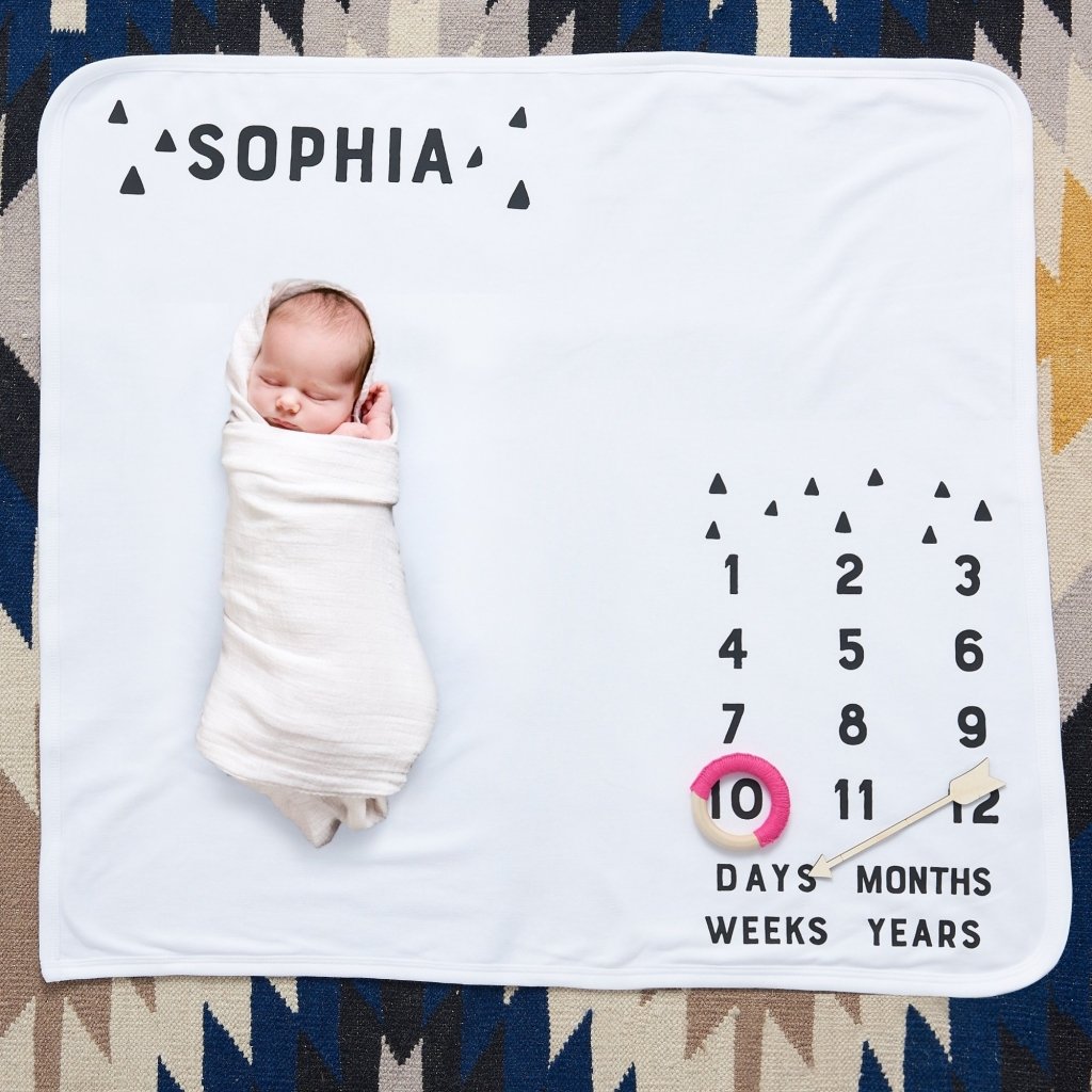 Our beautiful scandi triangle baby milestone blanket can be personalised with your choice of name & colour to capture those special early years. A great present for new parents or for your new baby, our milestone blanket helps capture special moments when time seems to fly by.