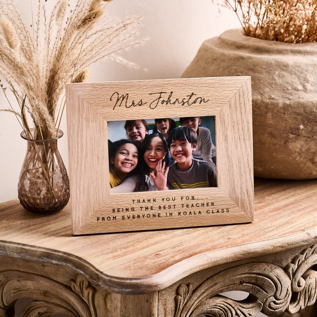 A lovely end of term or Christmas gift for a fab teacher to keep on their desk in the classroom, personalise a wooden picture frame with a group picture of the whole class and include an engraved message to say thank you for being the best this school year.