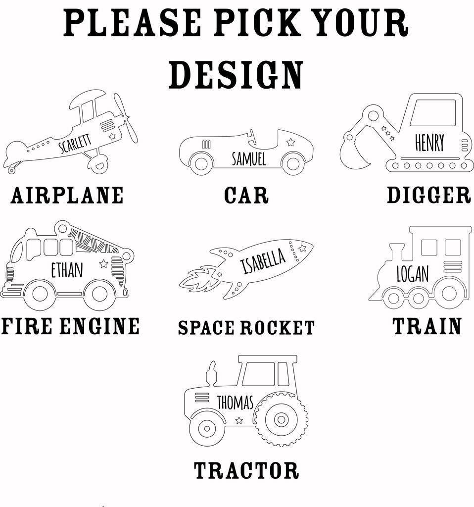 • Every bib is made to order and personalised with your name of choice and you can choose from the transport designs.