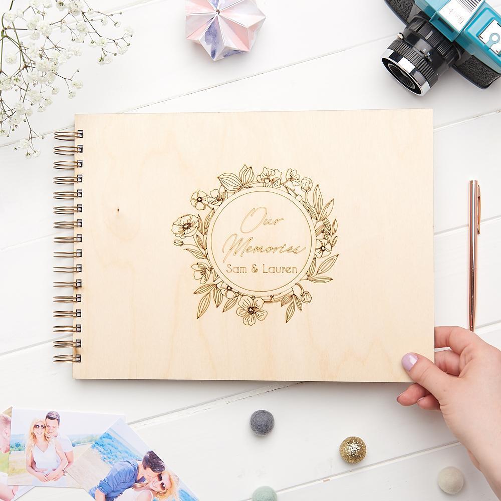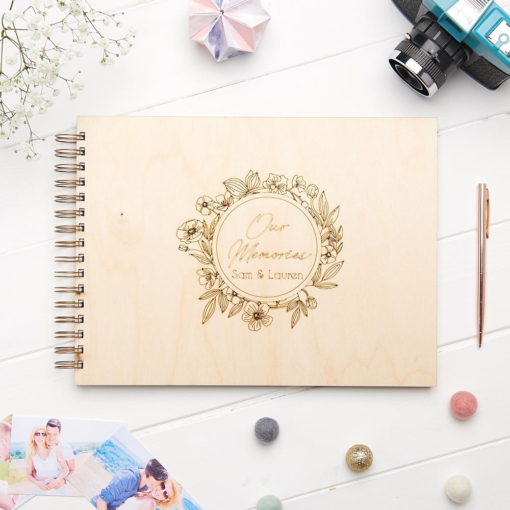 Celebrate those amazing memories you have as a couple with our gorgeous laser engraved wooden photo album, featuring our floral design. This beautiful book is personalised with your surname, wedding location and wedding date. All our guest books can be made from either birch or oak. This is a guest book that can be used on the big day and afterwards can be used as a memory book with wedding snaps, dried flowers from the wedding bouquet and wedding stationery.