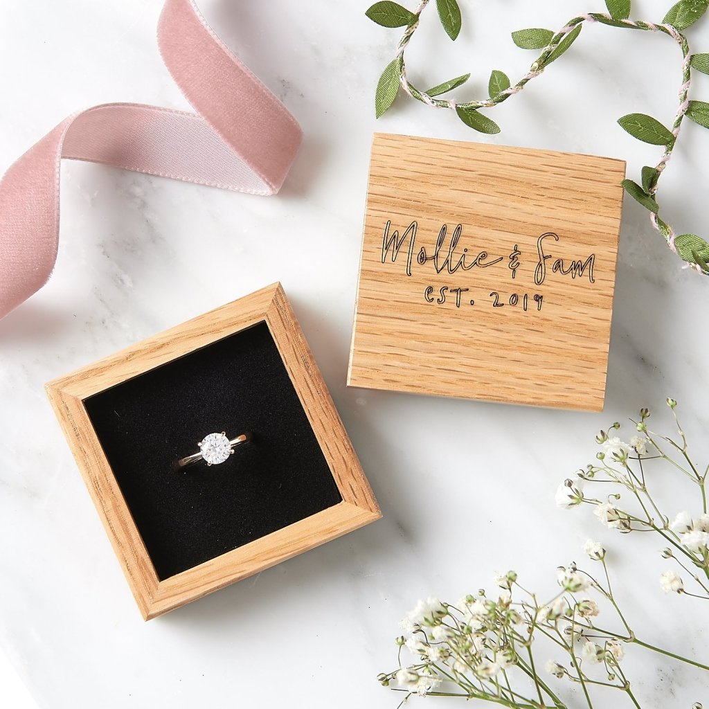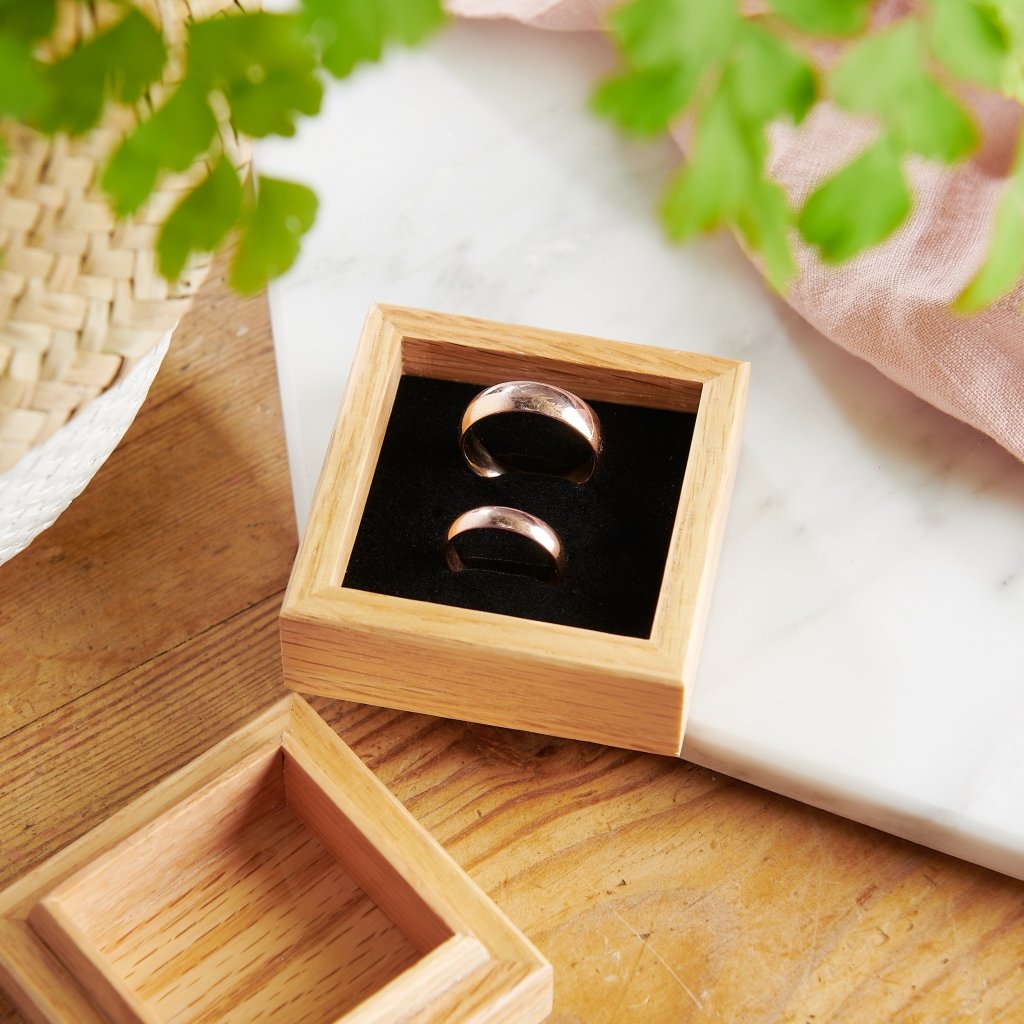 • Each ring box is made from oak and includes a velvet ring cushion.